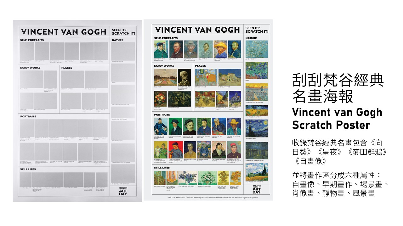 Today Is Art Day 刮刮名畫海報,讓喜愛梵谷的你,在去過美術館或展覽看過經典作之後,將經典畫作刮開以記錄你觀賞過的足跡。