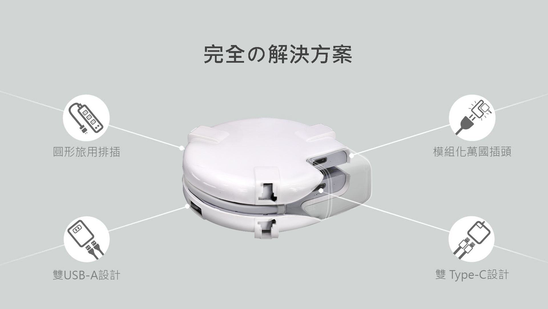 模組化萬國插頭圓形旅用排插雙Typc-C PD 快充設計雙USB-A設計大旅遊便利亮點