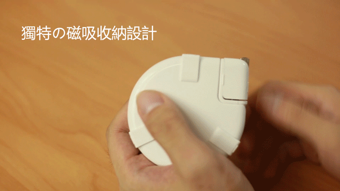 轉接頭部分採用模組化設計,有英規(UK)、歐規(EU)、美規(US)、澳規(AU),特殊的旋轉+磁吸式轉接頭,可有效精簡本體體積,插頭的磁吸收納功能,咔一聲就搞定,據說手感激似MacBook 的磁吸式充電線,收納的有感程度絕對讓你每次使用都會讚嘆不已!
