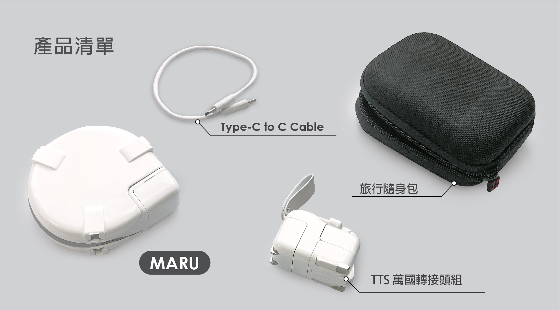 Type-C to C轉接線、MARU主體、TTS萬國轉接頭組、旅行隨身包