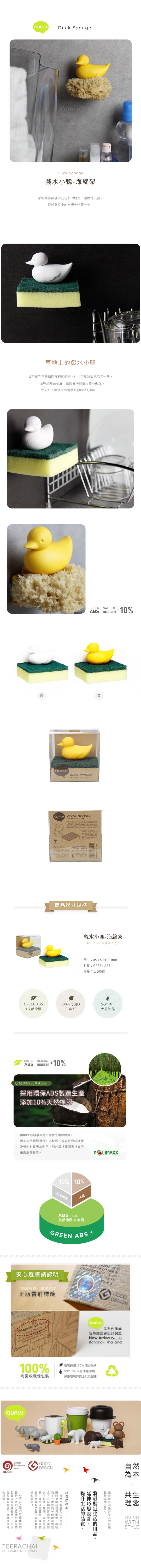 小鴨最喜歡駐留在有水的地方,愉悅地玩耍。沒想到家中的水槽也停著一隻!當用餐完畢想清潔整理碗盤時,往往容易將海綿隨手一放,不僅導致細菌孳生,更促使海綿使用壽命縮短。今天起,讓水槽小幫手幫你收納打理吧!