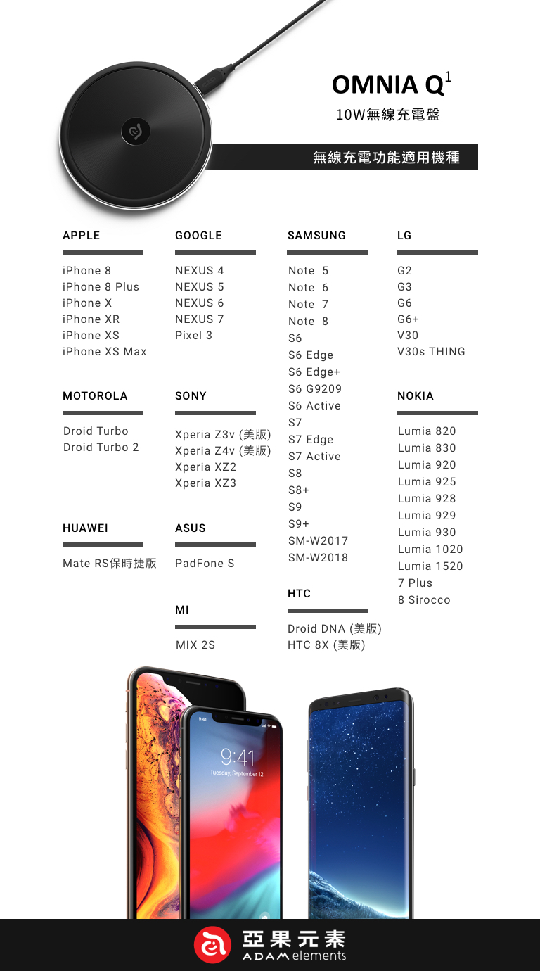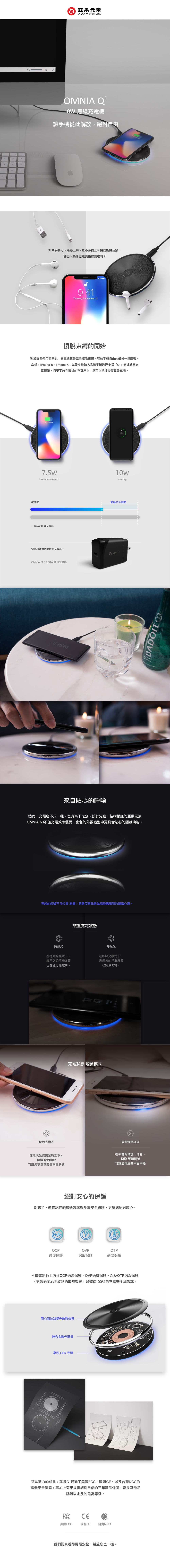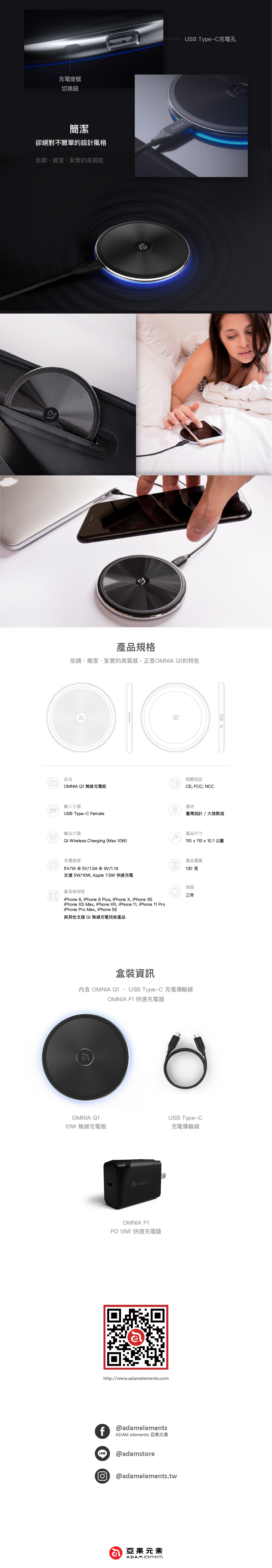 ADAM OMNIA Q1 10W 藍光無線充電盤 附黑色 PD/QC 18W 快充頭