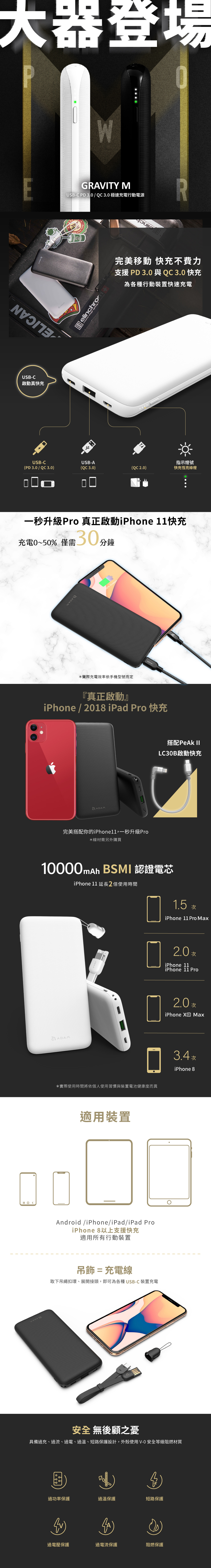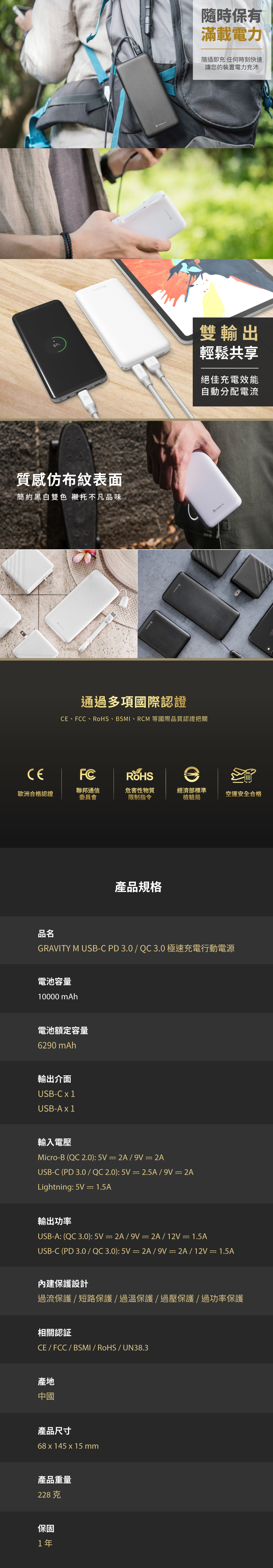 GRAVITY M USB-C PD 3.0 /QC3.0 快充行動電源 (兩色選)