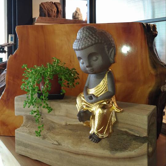 作品定調為居家生活空間的擺飾品,可放置玄關,或室內任一隅,其恬靜自在的氛圍,定能為人們帶來一份安定的心靈能量,其中搭配的木座,是以實木加以碳化處理,施以天然環保無毒的護木油 ,保留木紋天然的質感,以呈現樸實自然的品味,而實木厚重的重量也強化了自在,觀音,地藏王菩薩L型坐姿的穩定性及安全感,另一款福袋小菩薩的底座設計為編織袋,是社區媽媽純手工編織而成,而菩薩的陶瓷材質也適合擺放在户外庭園矮牆做景觀設計用。![]()