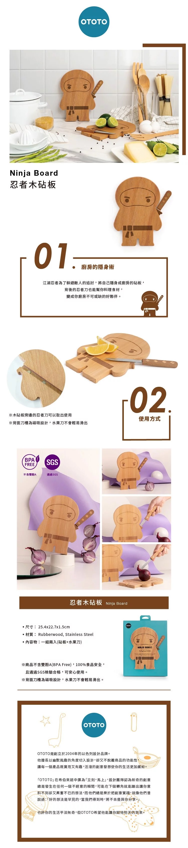尺寸:-25.4 x 22.7 x 1.5cm材質:-Rubberwood, Stainless Steel規格:-品名:OTOTO 忍者木砧板