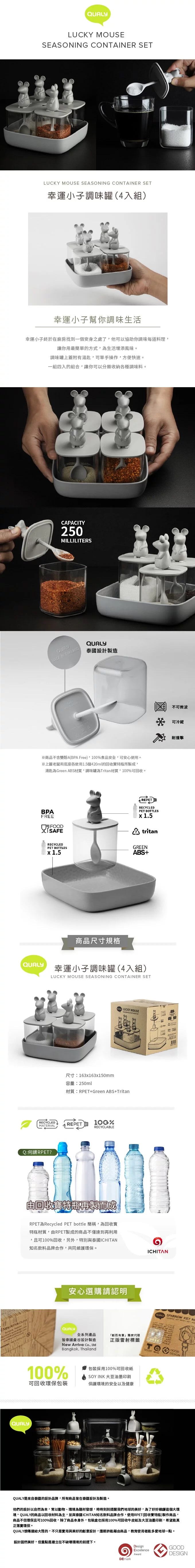 ※ 商品不含雙酚A(BPA Free),100% 食品安全,可安心使用。上蓋老鼠和底座各使用 1.5 個 420ml 的回收寶特瓶所製成,湯匙為 Green ABS 材質,調味罐為 Tritan 材質,商品 100% 可回收。![]()