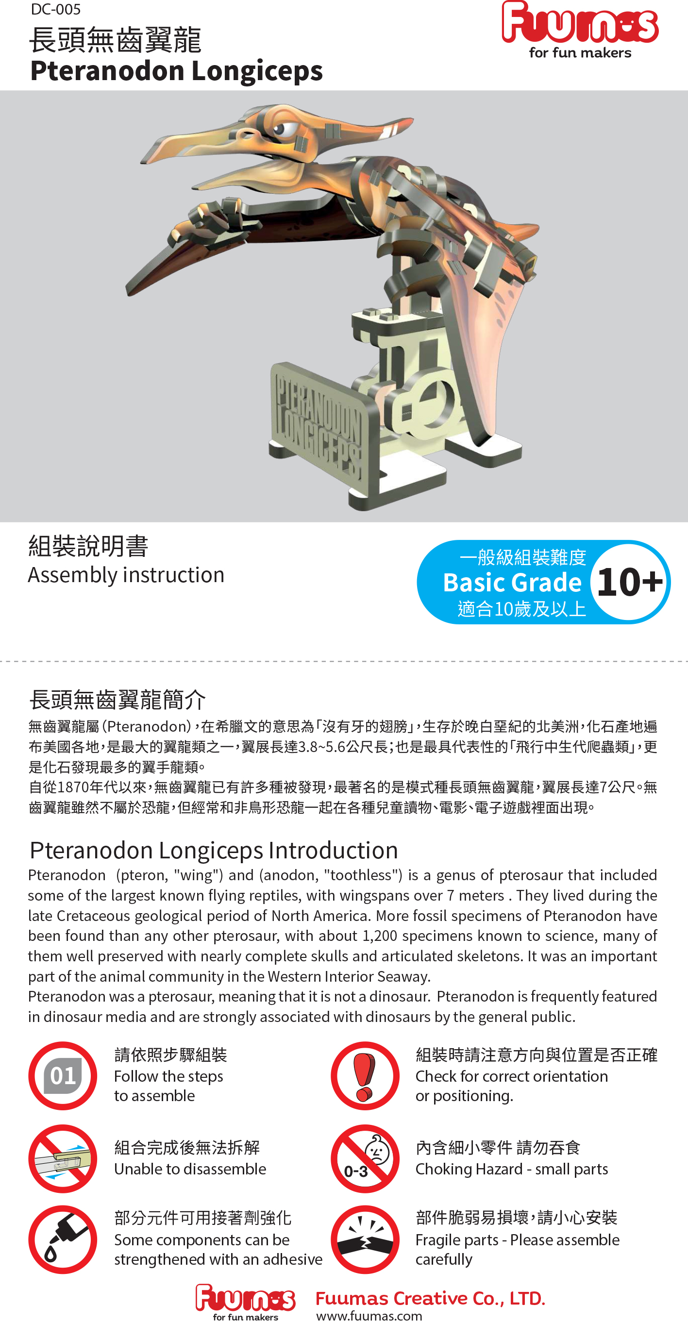 Fuumas 立體可動木質拼圖-長頭無齒翼龍