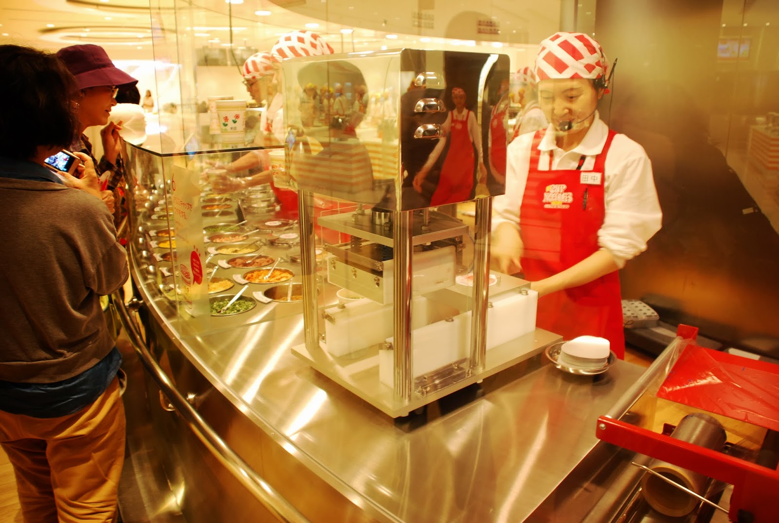 最後也是讓我很驚艷的是,日本人好聰明!利用太空包的原理,不用任何膠合工具,將杯麵放入外帶包之中,接著只要對著包裝打氣就可以自助完成太空包,在設計上也很有質感喔!真的很建議大家有機會去走走看看!