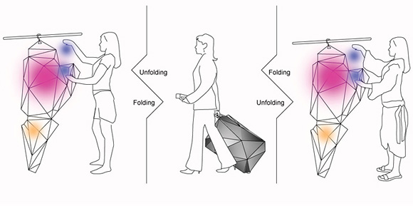 日本產品設計師Naoki Kawamoto設計出一款能夠摺疊節省空間的旅行箱,叫做「Orishiki Suitcase」,材質採用多角式硬殼,內裡有柔軟的夾層,平時不用時就有如一塊塑膠版,可以掛在衣櫥裡節省空間,旅行時將其組裝後就變成一個立體的行李箱,讓你可以安心的放置你的行李。