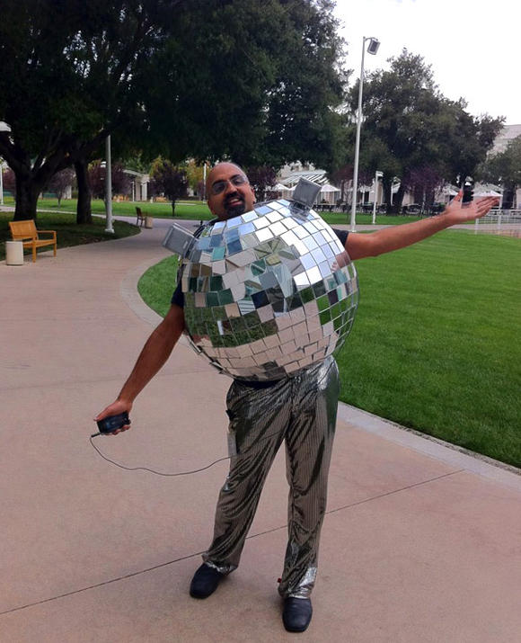 呵呵~這麼陶醉的老兄是把自己打扮成迪斯可舞廳的旋轉燈啦!!瞧他自我感覺多麼娘好啊!!