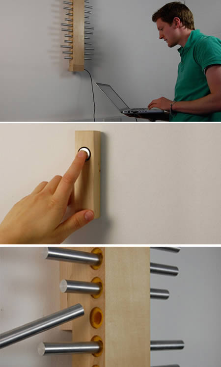 嫌普通門鈴太無聊嗎?這款音樂門鈴夠你好玩!設計師Mike Skene將門鈴加入了打擊樂器的概念,將13個鋁製編鐘裝在木頭框架上,當客人按下門鈴時就會發出悅耳的音樂,而且音樂還可以利用itune軟體下載新鈴聲,真的是太神奇啦!