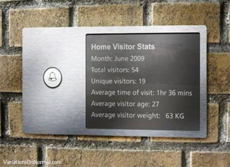 想知道你一個月有多少訪客嗎?試試看這個「客人統計門鈴(Home Visitor Recorder)」吧!可以統計每月來訪人數、特殊訪客人數、平均拜訪時間、平均訪客年紀、平均體重(?)等數據,感覺很適合店家行號來計算每個月有多少奧客使用呢~(誤)