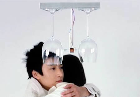 跟上面的有異曲同工之妙,這個手工製玻璃杯門鈴,透過酒杯的共鳴發出美妙的聲響!