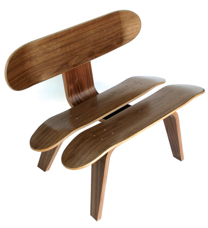 無獨有偶的,設計師Pierre Andre Senizergues 跟 Gil Le Bon de LaPointe也在加州成立了一家滑板家具公司「Skate Study House」,同樣也在玩滑板家具的生意,將回收來的破舊滑板搖身一變,成為充滿摩登時尚感的精緻家具,有些看起來還挺舒適的呢!看來滑板文化除了很街頭,還有十分「居家」的另一面呢~