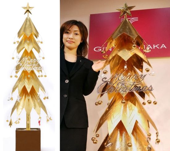 Ginza Tanaka店內的黃金聖誕樹,由21公斤重的24開純金打造,價值美金85萬元,光芒或許不如鑽石耀眼,卻一點也不減其貴氣!