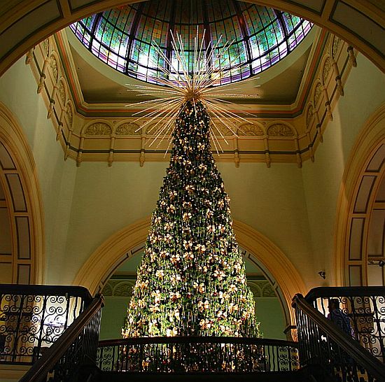 每年聖誕節,雪梨Queen Victoria Building百貨公司的中庭都會擺上一棵聖誕樹應景,4層樓高的聖誕樹掛上1萬5千顆施華洛世奇水晶、4萬顆燈泡等各式裝飾品,真的非常有聖善夜眾星照耀極光明的fu說!