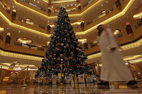 這棵在阿布達比現身的13公尺高的聖誕樹,全身上下掛滿了181顆鑽石、珍珠、首飾、手環、耳環、名錶,以及bling bling的球型裝飾品,果然將它美金1,100萬的身價襯得不同凡響,據說光是樹就要美金1萬塊了!有人嫌它俗氣,但人家就是有錢才會辦法弄得這麼珠光寶氣啊!