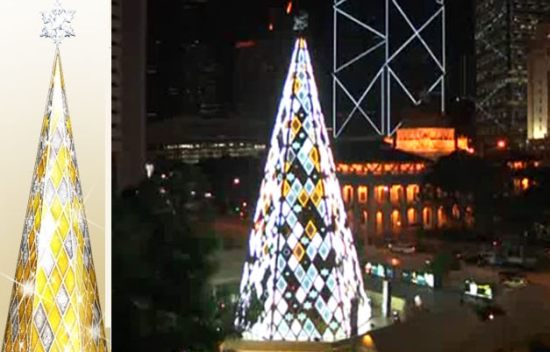 夜晚向來非常燦爛的香港,自然不可能放過一年一度的聖誕節,30公尺高的巨無霸聖誕樹,掛滿了2千萬顆施華洛世奇水晶和其他超過200顆裝飾品,每當前方的噴泉噴出6公尺高的泉水,彷彿在夜空中舞動出水晶的璀璨。