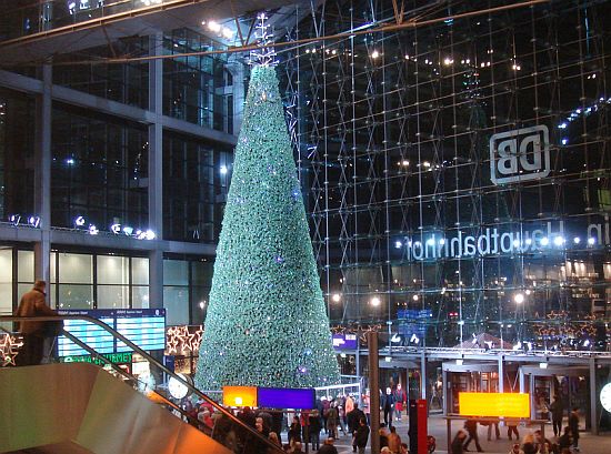 2006年柏林Haupfbahnhof火車站裡的聖誕樹,4萬顆施華洛世奇水晶為過往旅客裝點出濃濃的過節氣氛。