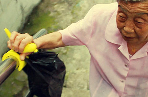 原來這是韓國設計師Kim Bo-kyung 和 Baek Eun-ha所設計的奇妙產品,其實說穿了,就是一個可在樓梯欄杆上移動的鳥型扶手,為的是讓年老的長者們,能夠較容易的行走於山坡的樓梯,而且小鳥頭兒還可以當作掛垃圾袋的掛勾。