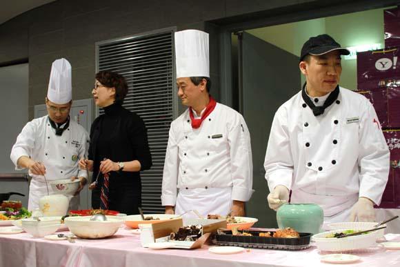 在試吃活動還沒正式開始前,各大飯店主持也親自幫各自的招牌年菜做最後的裝飾,你瞧瞧主廚們專心料理的模樣,難怪人家說,會做菜的男人最吃香啊!