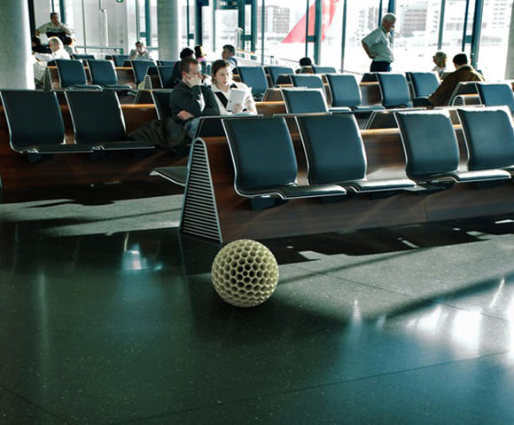 設計師Dave Hakkens設計了一個名為Dust Ball的清掃機器人概念產品,外表看起來就像是一個有很多洞的大圓球,不過這些洞可是有其功能的,可以把髒東西通通透過洞洞吸進去,而且這個Dust Ball還會自動巡邏,就算地板上有高低差或障礙都難不倒它。