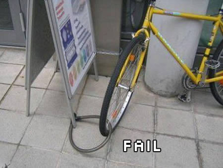 與失敗4案例有著異曲同工之妙,停車柱的租壯與遭竊機率並非成反比,看到這張照片只能說這人的自我安全感太過良好。