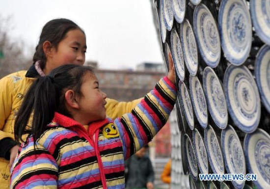 在這邊咱們特別送上景德鎮用三萬個瓷盤所組成的大型玉兔瓷像,祝大家在新的一年裡面,女的前「兔」後翹,男的談「兔」不凡,每個人都能鴻「兔」大展,揚眉「兔」氣,兔年行大運!