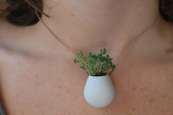 Collen Jordan設計的隨身攜帶迷你盆栽,讓你不論身在何處都能時時刻刻吸收最新鮮的第一手氧氣,就連芬多精也是工廠直送、原汁原味的。雖然從植物到容器都超級迷你,可能講話的時候被口水一噴,連澆水都免了,不過千萬記得帶著它去曬曬太陽,圍脖盆栽需要你的愛心滋潤!
