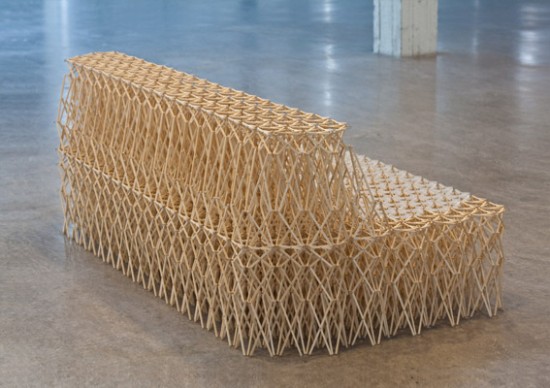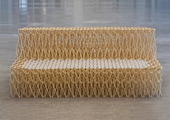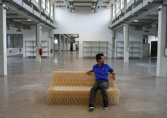 Yuya Ushida花了三個月將收集來的8000根回收免洗筷,將其組合成可以伸縮的免洗筷沙發,並且命成為「Sofa_XXXX」,之所以叫做XXXX的原因,是因為這張沙發能夠承受70公斤的重量,不會因為大力坐下而坐壞之外,還能更按照使用時機拉長或縮小,不用時可以縮小方便收納,使用時則可以拉長,甚至比一般家用沙發更來的實用,實用程度簡直比七大武器之首「折凳」有過之而無不及啊!重點是,還能幫忙解決環保問題,真是一舉兩得的藝術創作啊!