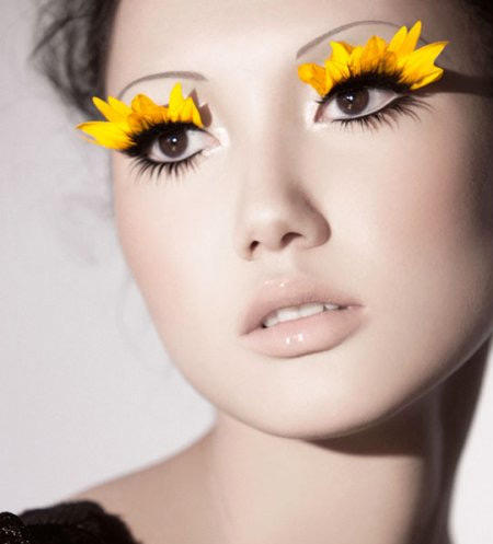 黑色的真睫毛當花蕊,黃色的太陽花花瓣當假睫毛,設計師Troy Jensen這招「真亦是假,假亦是真」,還真有兵法中「實而虛之,虛而實之」的深奧道理啊!