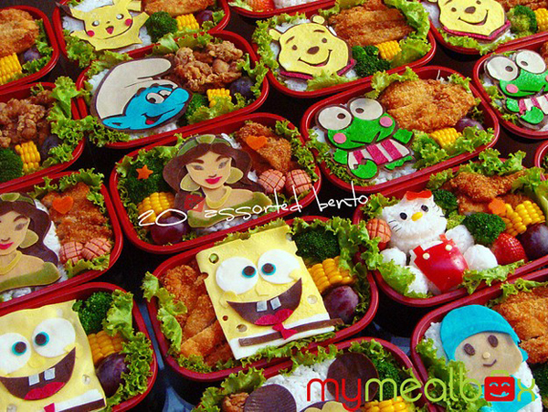 不過假如小朋友上學帶了一個這麼可愛的便當,不知道 便當會不會都被人家搶去吃人緣會不會變得比較好,除了Angry birds之外,還有很多卡通或電玩的角色也被製作成便當,像是神奇寶貝皮卡丘或是無俚頭的海綿寶寶便當,看起來也相當可愛。