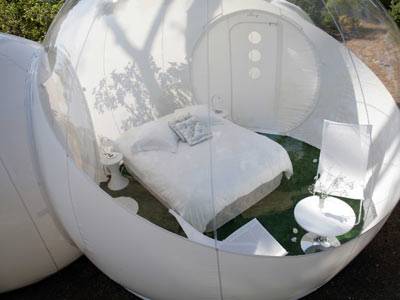 除了「Bubble Tree」之外,另外還有地上版的泡泡屋ChristalBubble,透明的小套房就像是個開放式的私人空間,可以眼觀八方卻不會耳聽四方,透明的「泡泡」阻擋不了視線,卻剛好可以隔絕室內或室外的噪音,在親近大自然的同時,也不會對它們造成太多干擾,如果不喜歡被看光光的感覺。