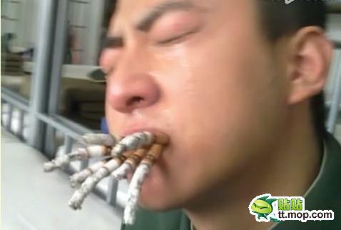 為了因應最近天災頻傳,解放軍某部隊長官特別下令單位實施防災訓練,首先最重要的就是「防煙訓練」,只見大兵們為了部隊的榮譽和國家的安全,不僅將自己置身於煙霧瀰漫的濃煙之中,嘴裡含著大把的煙草的同時,還要紮馬步練武術,就算眼睛被薰到猛掉淚也不吭一聲,果然是鐵血般的訓練造就鐵一般的部隊啊!(遠目)