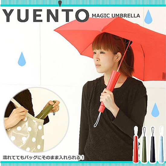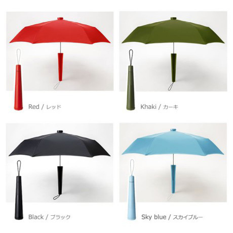 這樣簡單的設計卻解決很多人在雨傘使用後收納進包包的困擾,頂端的蓋子設計可以把雨水全部關在圓筒裡不外漏。要使用時直接將傘拉出來又不用擔心圓筒該放何處。