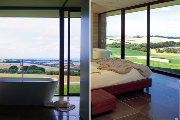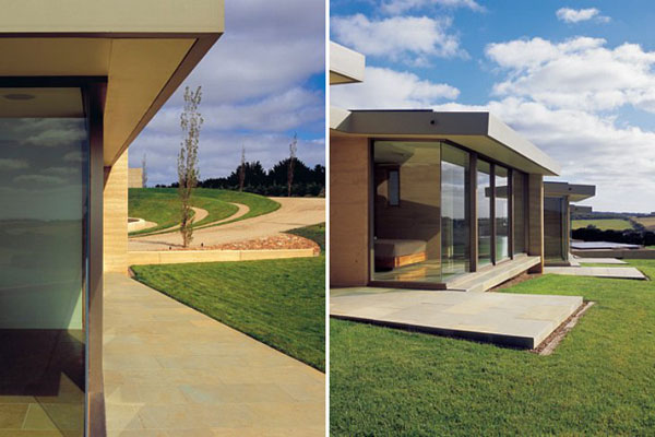 Earth House由Jolson Architecture所設計,面積大約465平方公尺,分割成好幾個獨立的生活空間,包括沙發區、用餐區、書房與廚房,以及臥房、浴室,由狹長型的走廊串起生活的動線,從中央的天井望出去,剛好是一望無際的海景,天氣好時,舒服的泡在無邊境泳池中,即使只是懶懶的靠在池邊,都是種享受。