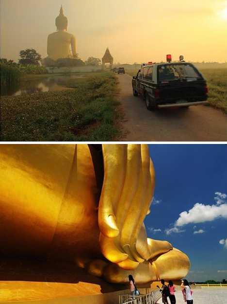 想要參拜大佛,從曼谷往北開車大概兩個小時就能到達,附近還有柴迪隆寺(Wat Muang Temple),也是相當知名的觀光景點,據說寺內還有不少以死亡為主題的壁畫,有點像是東方版的「但丁的地獄之旅」,難怪泰國的鬼片這麼有名啊!(大誤)