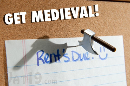 這張圖看起來是不是很像一斧殺了這份留言,在上面的留言換成「I KILL YOU」然後笑臉多畫些血跡就更完美了(恐怖),如果公布欄上都用這種另類圖釘來釘滿整份文件想必一定很壯觀。