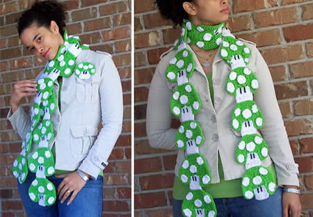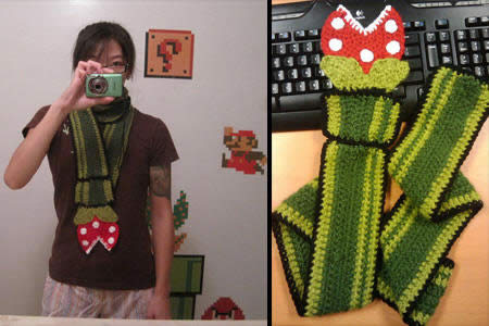 永垂不朽經典電視遊樂電玩「超級瑪利」也被拿來當作圍巾設計的惡搞點子,這朵在下水道管子冒出來咬瑪莉的食人花想必各位旅行者都不陌生。玩遊戲時一定被這朵花氣的牙癢癢,但在這邊換各位做主,纏繞在脖子上看這食人花還能怎做怪。