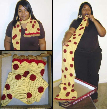 繼上一條培根圍巾後再來一款仍舊看似美味可口的披薩圍巾,這條圍巾可以讓喜愛美食的老饕們多一種保暖選擇,但圍著這條圍巾走在路上應該不會突然被路旁的惡狗咬一口吧。