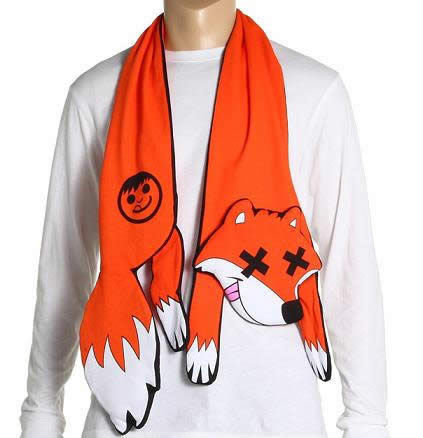 這條幽默有趣的圍巾用了一隻可愛(掛掉)的狐狸當作裝飾重點,感覺有點像是打獵完把獵物披在身上,讓狐狸溫暖的偽皮毛可以陪伴度過整個寒冷冬季。