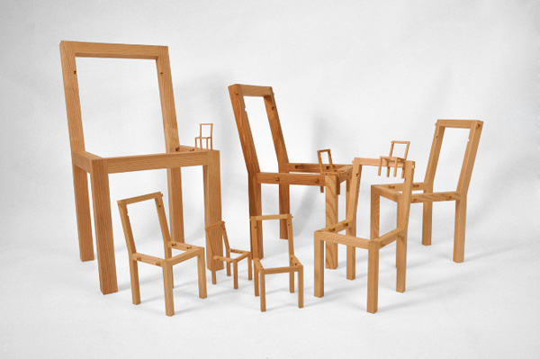當各個框架拆開時,就是一張張獨立的裝飾小木椅(不能坐啊XD),有種大椅小椅落一盤的感覺,相當的耐人尋味,看到最小的框架坐在大框架上時,還有種擬人的趣味呢!