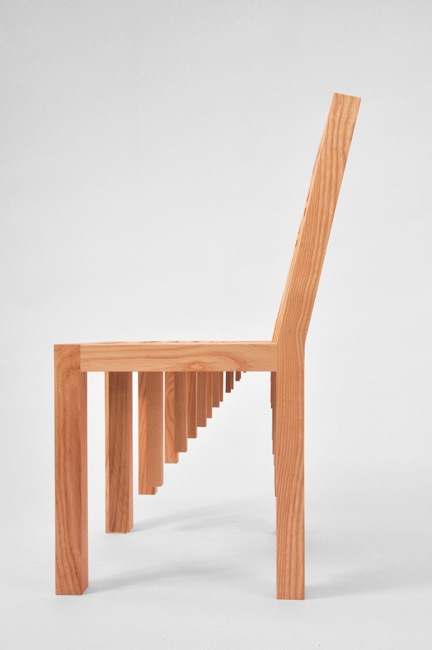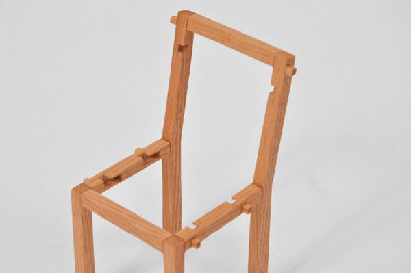 這張全面啟動椅就如同無限輪迴的迴圈般,在最外圈的木頭框架內又有數個等比縮小的框架,就如同「俄羅斯娃娃」般每個框架都有卡榫,可以與較小的框架組合,將其全部組裝時,就是一張扎實的木椅。