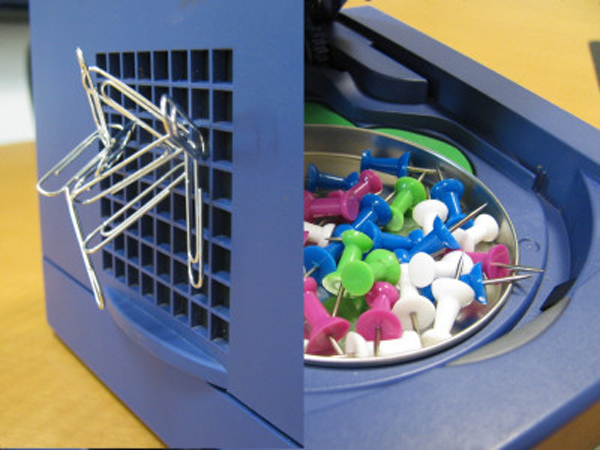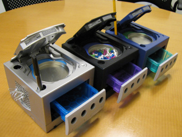 有網友就把不用的GameCue主機,改造成可以置放文具或雜物的小置物盒,看起來還滿有趣的,而且挺實用的感覺。因為GameCube本身造型方方正正的就很可愛,想不到一代名機的下場,就是裝裝大頭釘和當成手機座啊~(遠目)