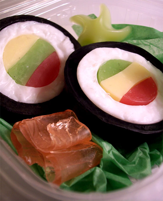 看看這盤肉質白裡透紅的生魚片壽司,是不是瞬間讓你食指大動呢?但筷子千萬別夾下去!雖然大人物不知道裡面有沒有塑化劑,但可以確定的是它並不是真正的食物,你猜得出來它是什麼嗎?(標題就破梗了還問什麼問XD)