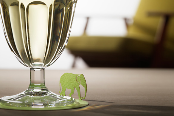 ▲將杯墊疊在一起就可以造景,也可以稱之為男人與鵝的浪漫!