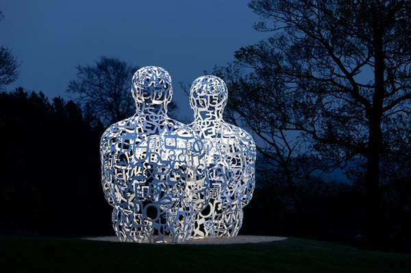 像是位於倫敦北邊約200英里的Yorkshire Sculpture Park,走進去就可以看到西班牙藝術家Jaume Plensa的雕塑作品,Plensa藉由文字、光線、聲音三個元素,描繪出人體的模樣,每張臉都是Plensa在世界各地展出時所遇到的臉孔,建構在以自己為範本的身體之上,每座雕像都表達了一段感情、一段回憶、一段文字或一種絕望。
