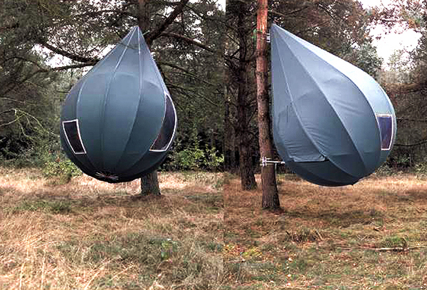 誰說樹屋就一定要用木頭做的呢?荷蘭設計師Dre Wapenaar就跳脫這樣的刻板印象,改以堅固的鋼架、帆布創作出樹上帳棚,帳棚呈露珠狀,掛在高高的樹上,就算下與也不用擔心泥濘的泥巴地會造成任何麻煩,原本是為了聲援抗議政府砍樹築路的樹居抗議份子,讓他們拉長抗議戰線使用,沒想到卻意外吸引了喜好野外露營的自然愛好者,別看帳棚好像空間不大,裡頭可還裝有床墊和木頭床架,據說要容納一家四口不成問題,想要來點不一樣的露營體驗的話,不妨嘗試看看吧!
