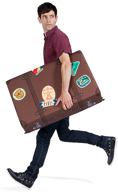 旅行走累了?就坐在行李箱上思考下一步該往哪裡去。雖然這行李箱裡面已經塞滿了泡綿,但是把你的旅行夢都讓它吸進去,一同去旅行吧!