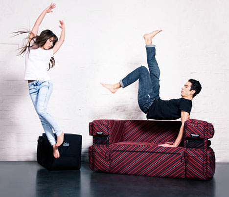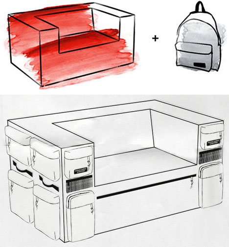 話說唬面女月初到了花東當了背包客七天,吃素了七日是「粗宿」了七日,住的民宿幾乎都是以簡便為主,每個人配到的收納空間十分有限,於是Quinze & Milan設計了個概念商品「Couch + Backpack = Small Sofa with Super-Sized Storage」,把背包的收納功能完全連結到沙發上!